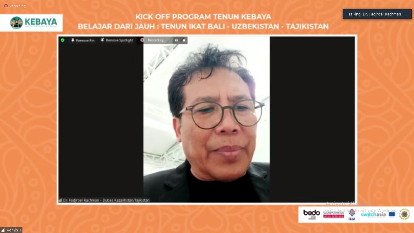 Pada Kick Off Program KEBAYA Tahap II ini dilaksanakan Workshop Hybrid dengan judul “Belajar dari Jauh: Tenun Ikat Bali- Uzbek-Tajikistan”.dengan menghadirkan narasumber dari Indonesia dan mancanegara, yaitu Mr. Abdulloh Mirzaahmedov dari Margilan Crafts Development Center, Uzbekistan yang merupakan produser ikat generasi ke-9 di Uzbekistan. Ms. Nigina Ikromi, National Coordinator RUTSIS Project Tajikistan, Ms. Nadezhda Zdravkova dari IKAT Connection yang merupakan pakar internasional dalam industri kreatif Asia Tengah.
