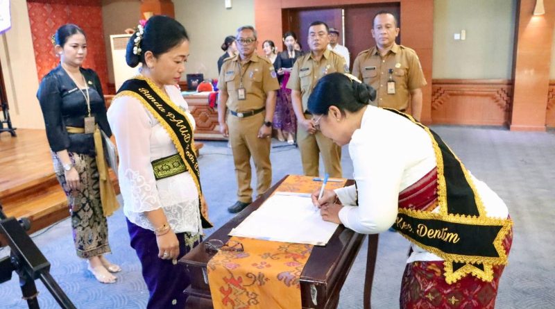 (Dutabalinews.com), Ketua Tim Penggerak (TP) PKK Kota Denpasar, Ny. Sagung Antari Jaya Negara, melantik Ketua TP PKK, TP Posyandu, Bunda PAUD, dan Bunda Literasi di tiga kecamatan se-Kota Denpasar, bertempat di Graha Sewaka Dharma Lumintang, Senin (13/10/2025). Ketiganya yaitu Ny. Prima Yusswara sebagai Ketua TP PKK Kecamatan Denpasar Barat, Ny. Wardani Ariyanta sebagai Ketua TP PKK Kecamatan Denpasar Utara, dan Ny. Ida Ayu Alit Maharatni Purwanasara sebagai Ketua TP PKK Kecamatan Denpasar Selatan.