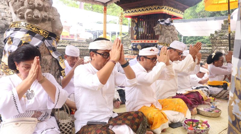 (Dutabalinews.com), Jajaran Pemkot Denpasar melaksanakan persembahyangan serangkaian Pujawali di Pura Dalem Sakenan, Desa Adat Serangan, Denpasar, bertepatan dengan Hari Suci Kuningan, Sabtu (29/11). Kegiatan ini dihadiri Walikota Denpasar I Gusti Ngurah Jaya Negara, Wakil Walikota I Kadek Agus Arya Wibawa, serta Sekda Kota Denpasar Ida Bagus Alit Wiradana, bersama pimpinan OPD dan masyarakat yang terus berdatangan sejak pagi.